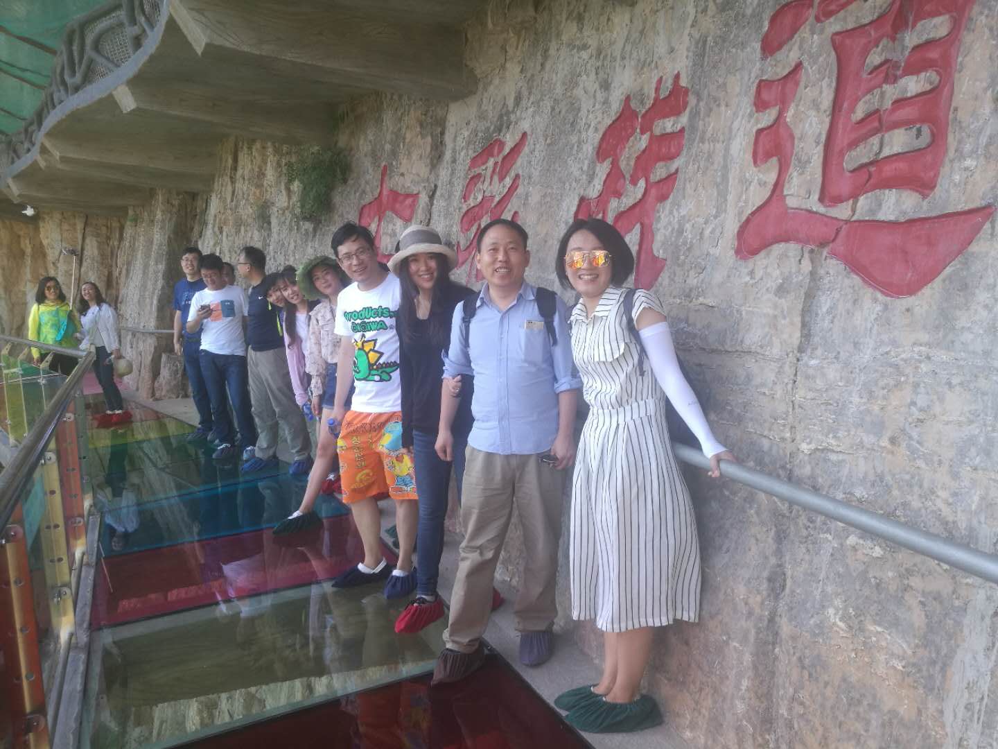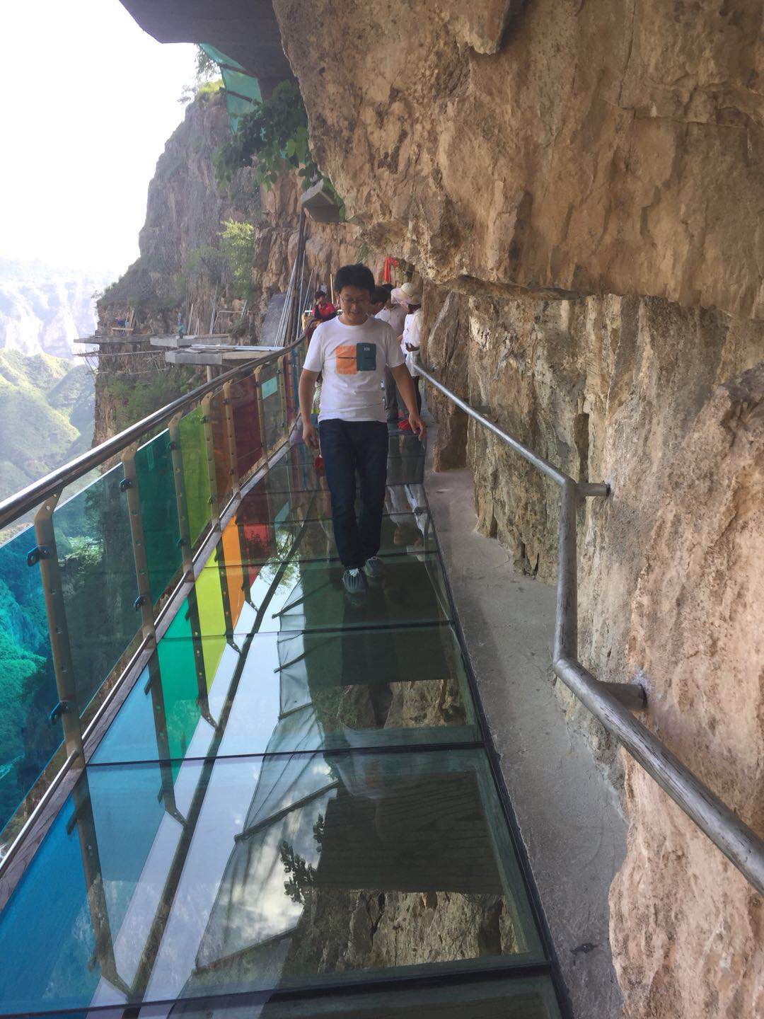 (豐盛的農(nóng)家菜) 團建活動part 2:挑戰(zhàn)七彩玻璃棧道 吃過午飯,一行人乘車去往東湖港。東湖港的玻璃棧道是七彩的,這是國內首家“七彩玻璃棧道”,挑戰(zhàn)區(qū)全長1200米,其中七彩玻璃128米,高差600余米。走在玻璃棧道上,猶如踩著一條長長的彩虹橋,驚險刺激而又不失浪漫夢幻!