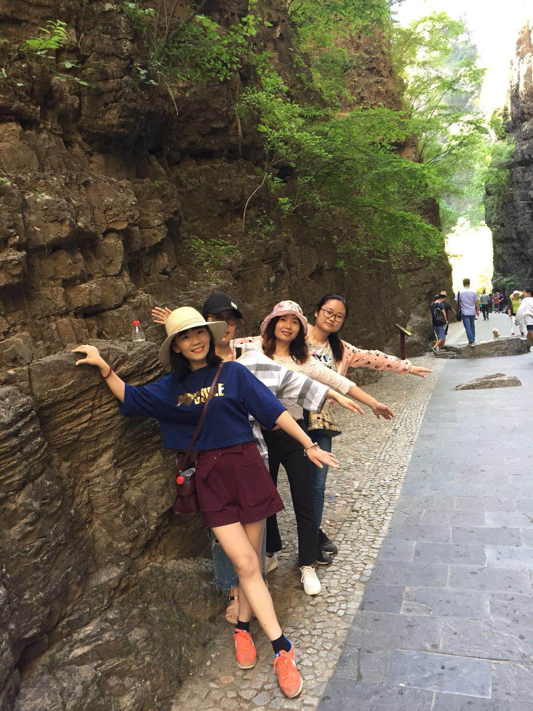 團建活動part 4:游覽“天下第一峽” 團建第二天我們要去到的是被譽為“天下第一峽”的百里峽景區(qū),聽聞百里峽天梯有三千余階,可是嚇死“寶寶們”呢,幸好經(jīng)過一夜的休息,大家精力已恢復大半。 走在狹窄的峽谷中,駐足而望,兩側聳然屹立的翠色絕壁,頭頂上若隱若現(xiàn)的一線天光,遠處山巔的藍天白云,腳下忽左忽右的溪流……若不是那彩色纜車過于美好,“小芯”肯定是要徒步登上山頂?shù)?!沒錯,“小芯”真的是被纜車“色誘”過去的?。。?/span>